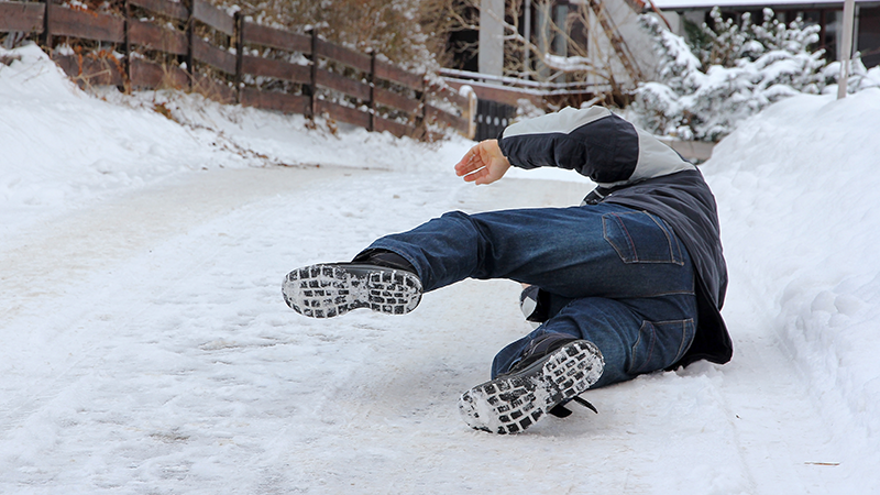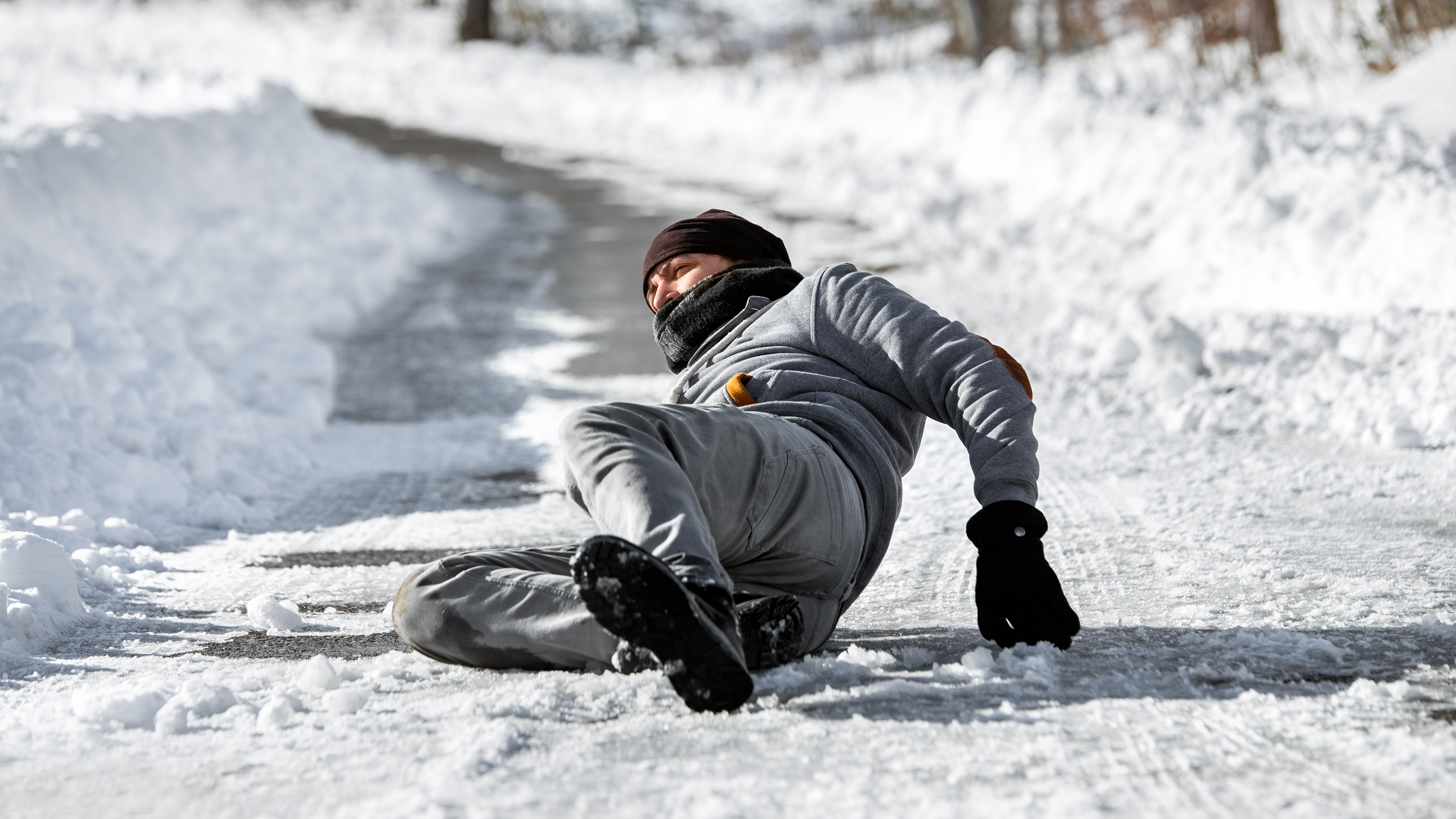 Schnee und Eis: Die wohl offensichtlichsten Gefahren. Schon kleine vereiste Stellen reichen aus, um das Gleichgewicht zu verlieren.