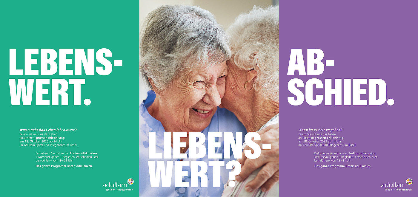 Wie wollen wir altern? Wie können wir Lebensqualität bis zum Schluss bewahren? Und was bedeutet es, würdevoll zu gehen? Die Adullam Spitäler und Pflegezentren widmen sich diesen existenziellen Fragen mit einem öffentlichen Erlebnistag am 18. Oktober 2025 ab 14.00 Uhr im Adullam-Park Basel. Die Veranstaltung verbindet Information, Begegnung und Unterhaltung und richtet sich an die breite Öffentlichkeit.